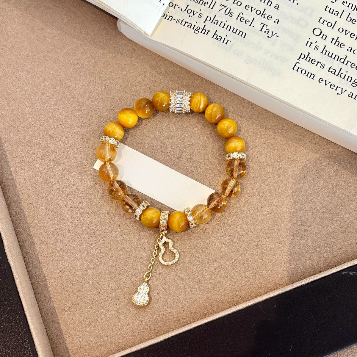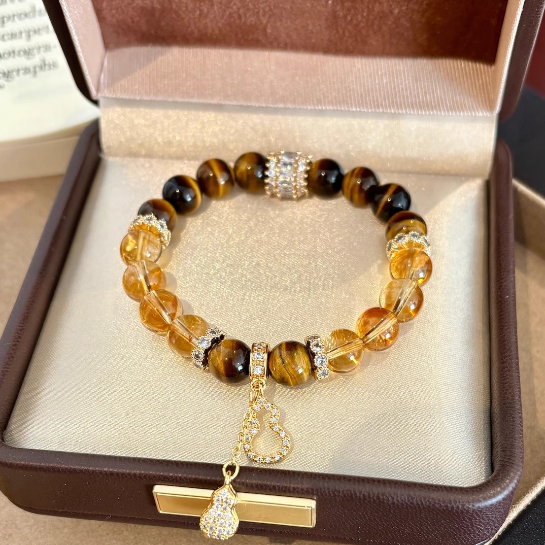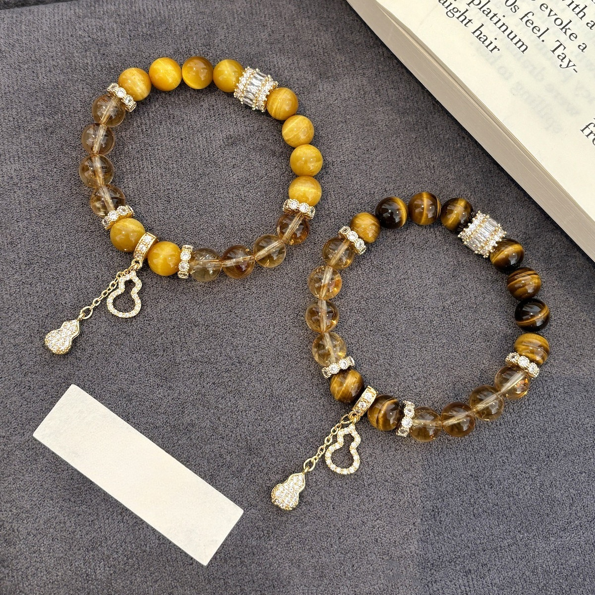 Design Highlights: Adorned with diamond-studded spacer beads and a gourd-shaped pendant, lending an air of elegance and refinement. The Golden Tiger's Eye represents "action and determination," while Citrine boosts "wisdom and opportunity."