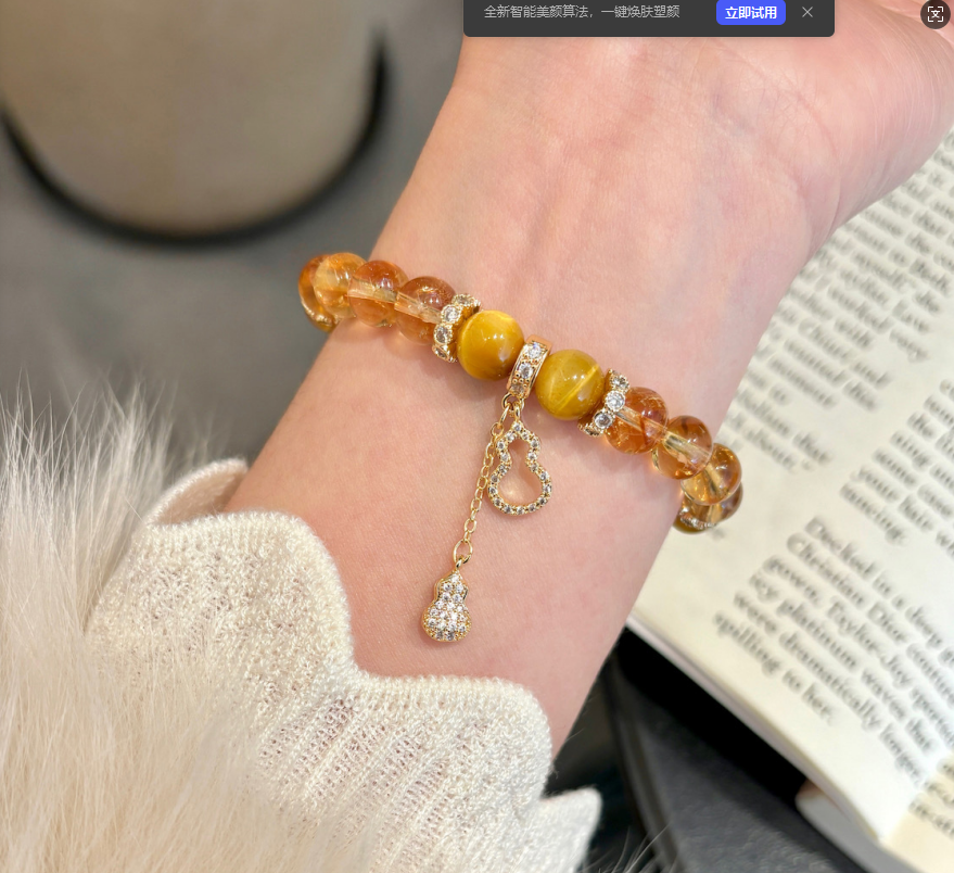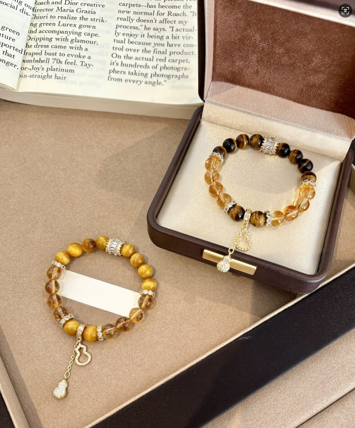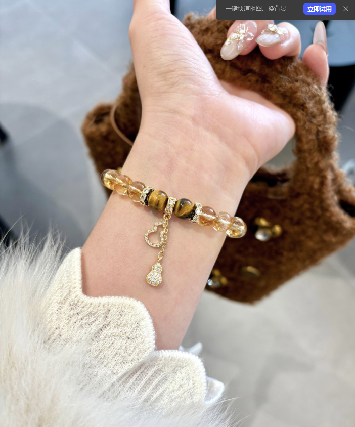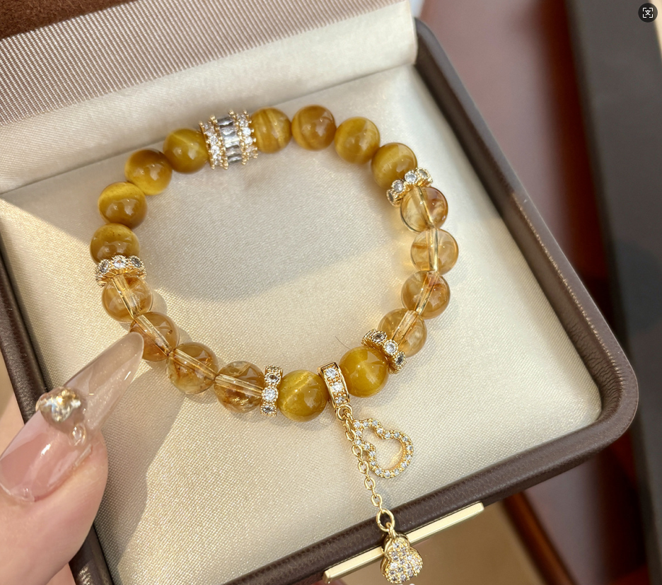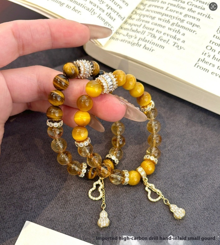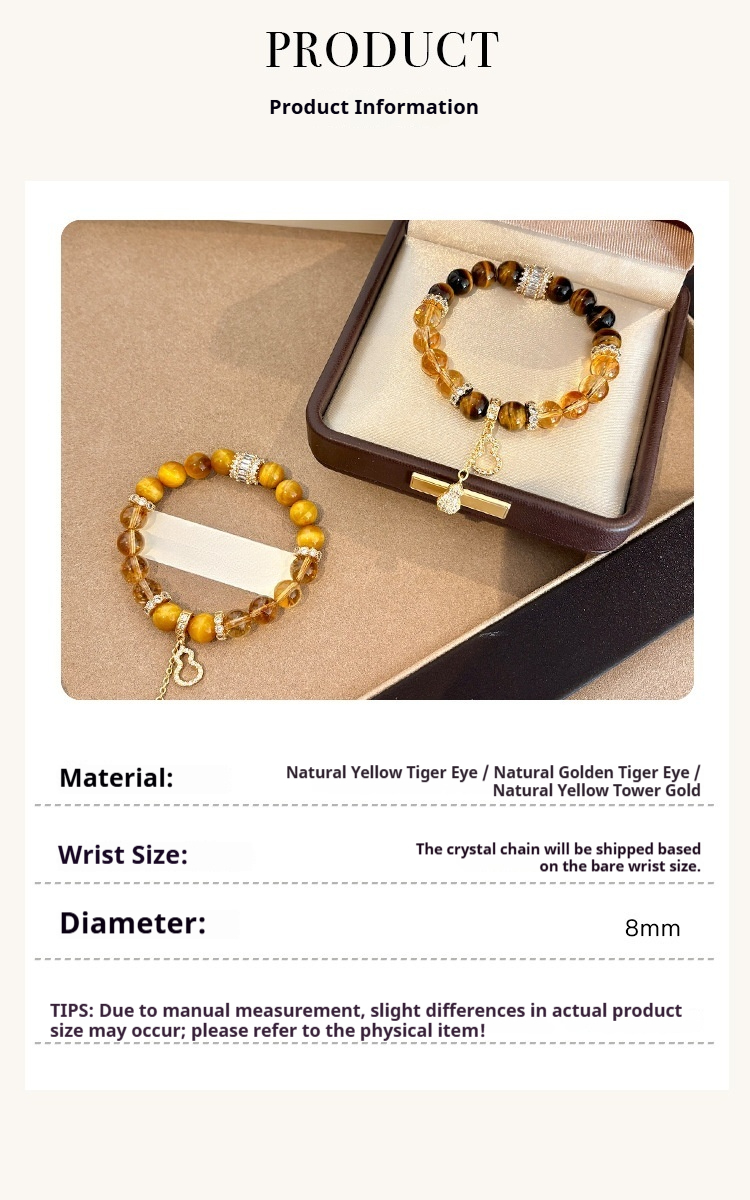 Design Highlights: Adorned with diamond-studded spacer beads and a gourd-shaped pendant, lending an air of elegance and refinement. The Golden Tiger's Eye represents "action and determination," while Citrine boosts "wisdom and opportunity."