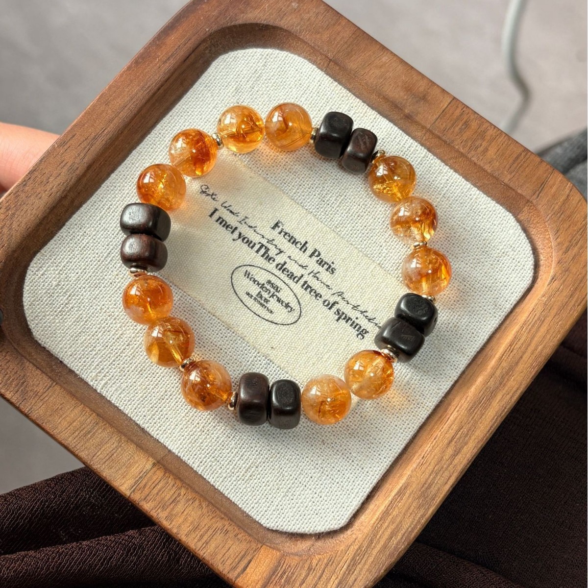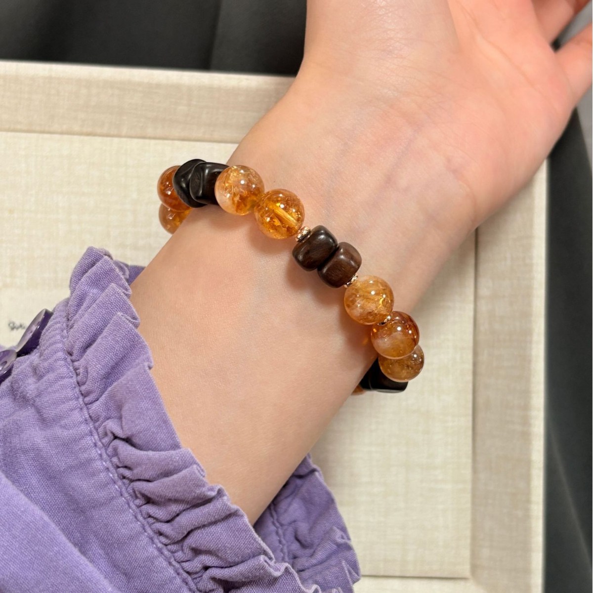 - **Golden Tower Quartz+ Agarwood Combination:** A perfect blend of "wealth energy" and "emotional stability," the golden hues paired with deep brown create a visual balance of "light and shadow, movement and stillness." This combination exudes maturity, embodying the professional aura of modern women while preserving the reserved elegance of Eastern culture.