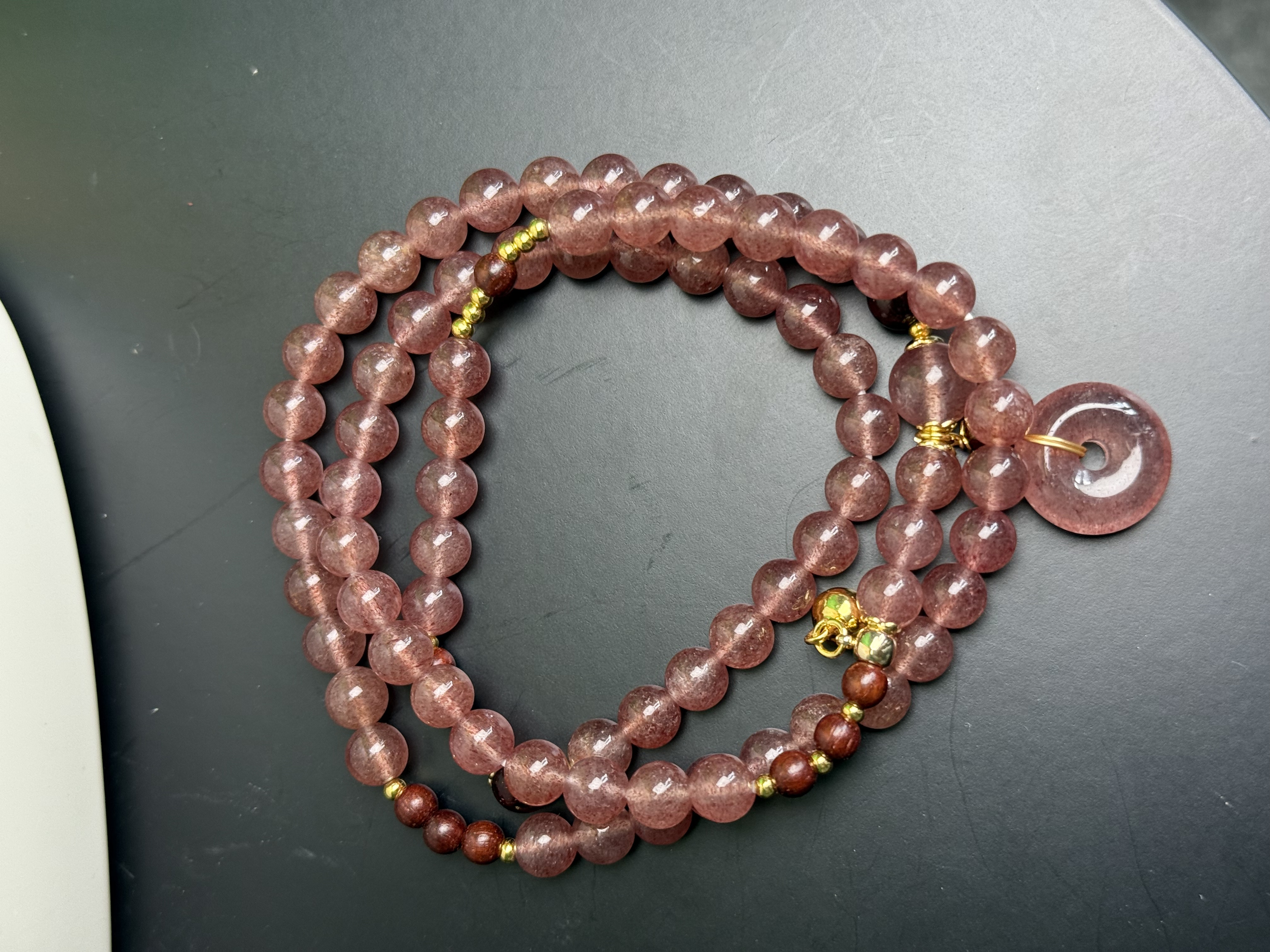 2. **Premium Strawberry Crystal**: Selected for its distinct hue and light-reflecting properties, the strawberry crystal adds a playful yet sophisticated touch to your ensemble. Its subtle variations in color and internal textures make each bracelet uniquely beautiful.