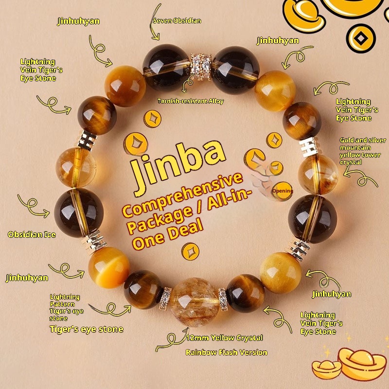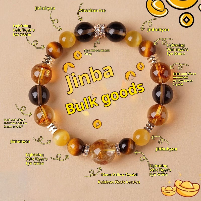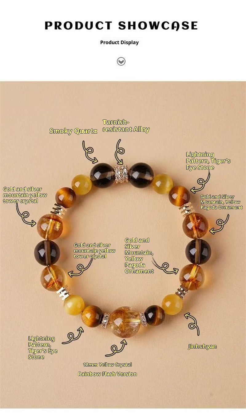 **Main Stone Combination:** Golden Tiger Eye, Lightning Pattern Tiger's Eye, Golden Silver Mountain Yellow Tower Crystal, Ice Obsidian, 12mm Rainbow Flash Yellow Crystal