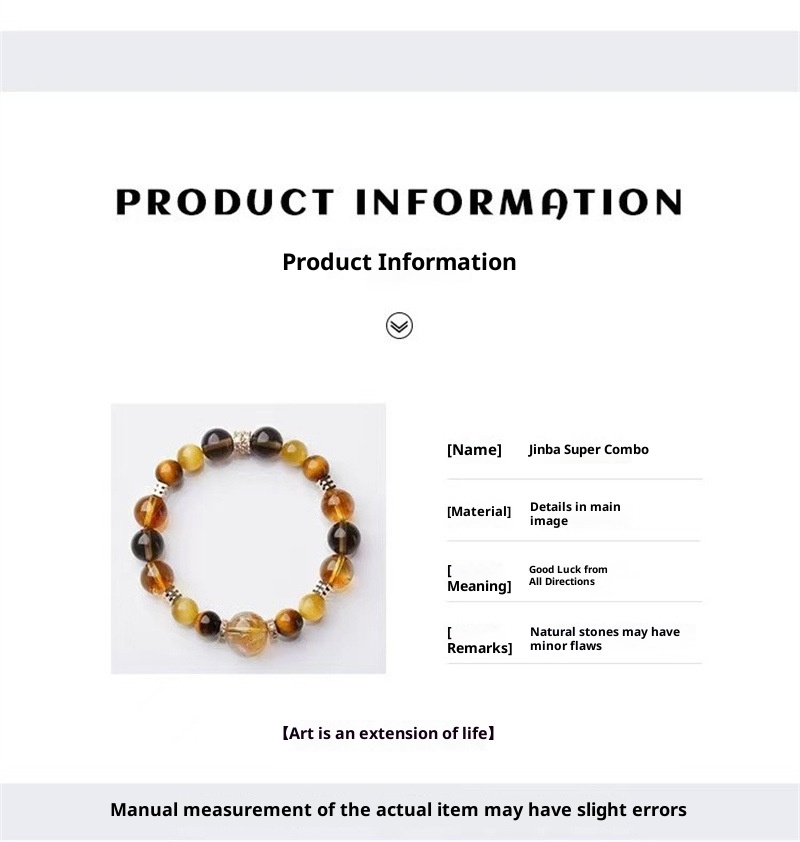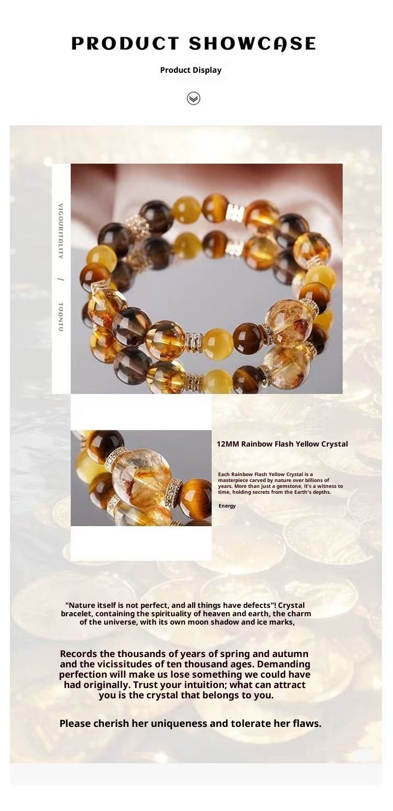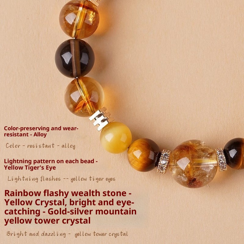 As the Golden Tiger Eye gazes forward, the Lightning Pattern shreds the fog of uncertainty, the Golden Silver Mountain amasses wealth, and the Rainbow Yellow Crystal ignites hope—this is more than a mere crystal bracelet. It is your energy key to financial freedom and peak life achievement. Wear it to invite fortune, attract supportive allies, and transform your dreams into reality with clarity and confidence.