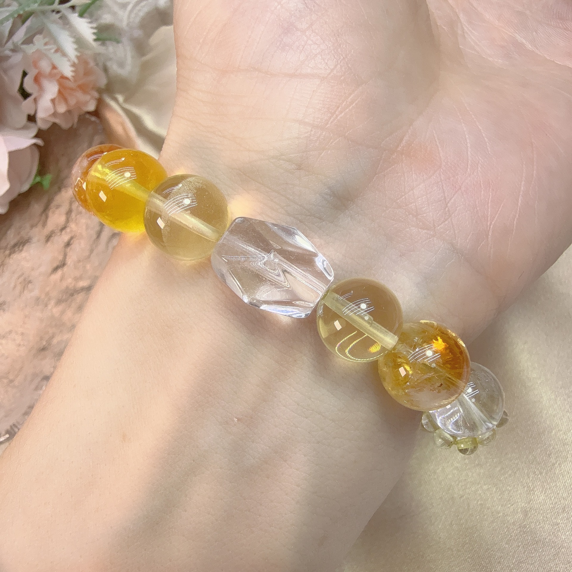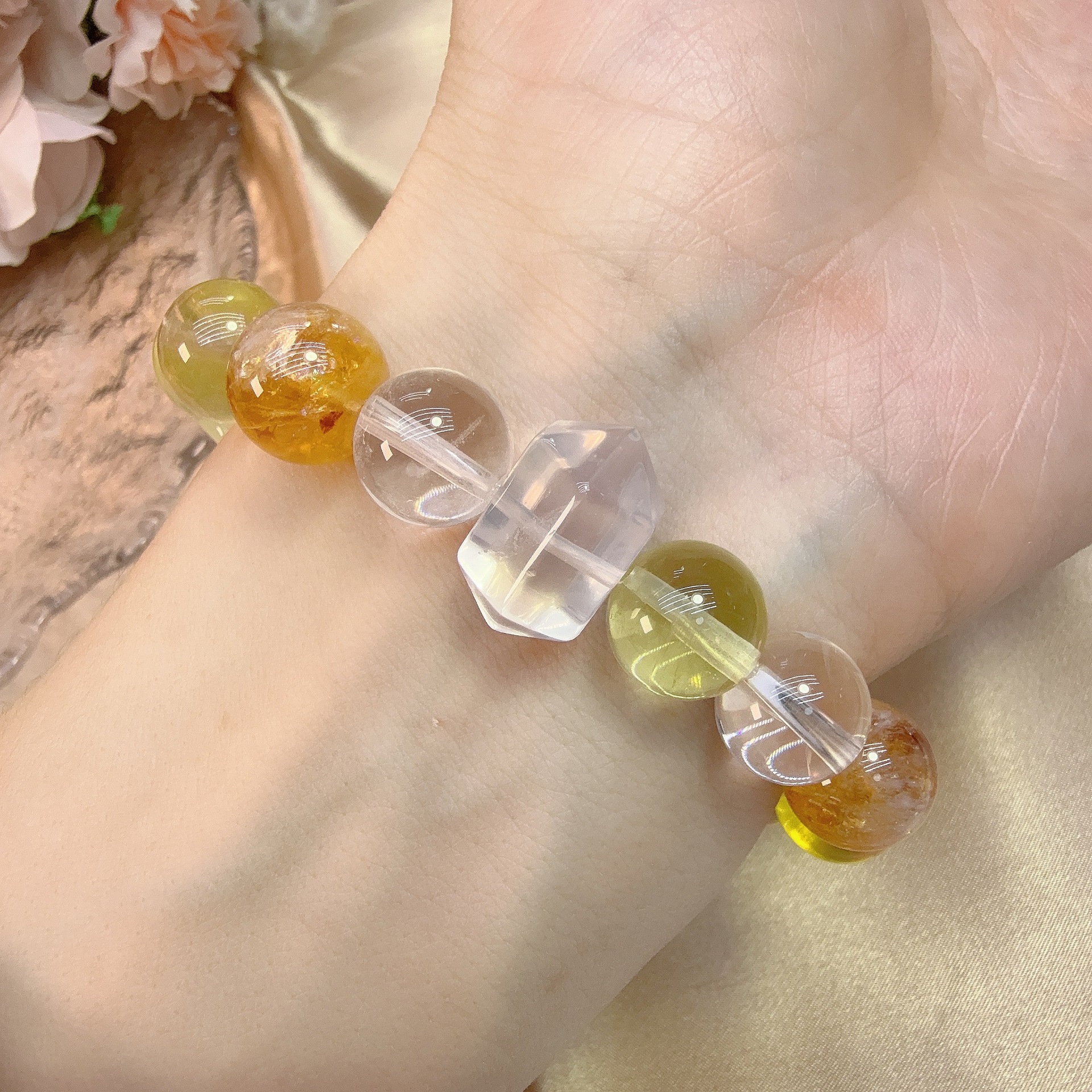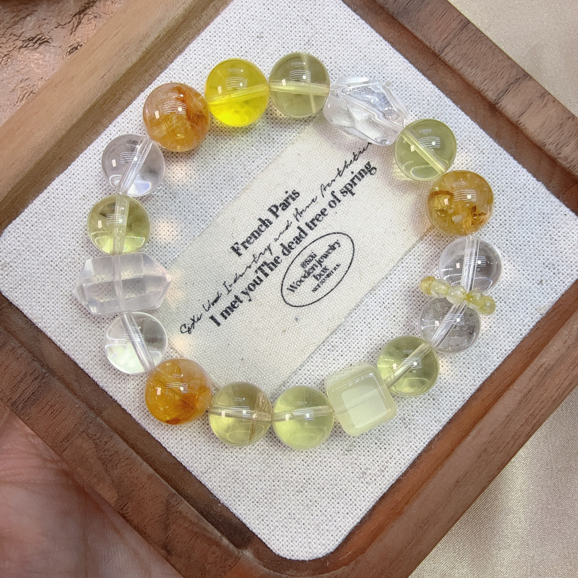 Introducing the "Light of Nature" bracelet, an exquisite piece crafted with citrine, clear quartz, and lemon quartz crystals. Its minimalist design exudes freshness and is infused with the radiant energy of sunlight.