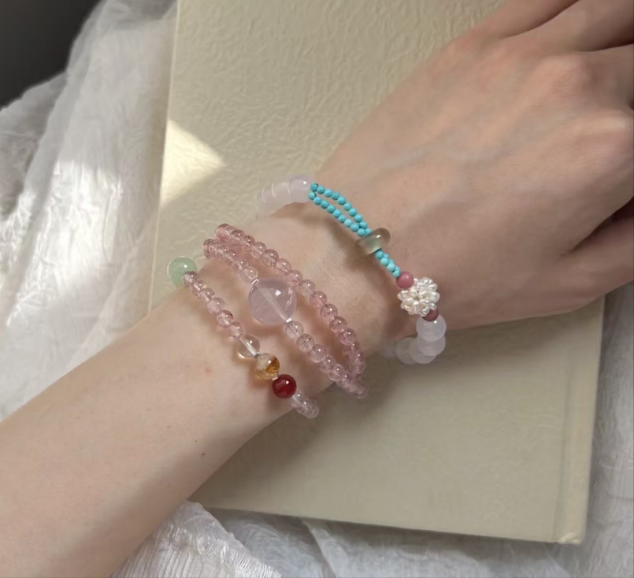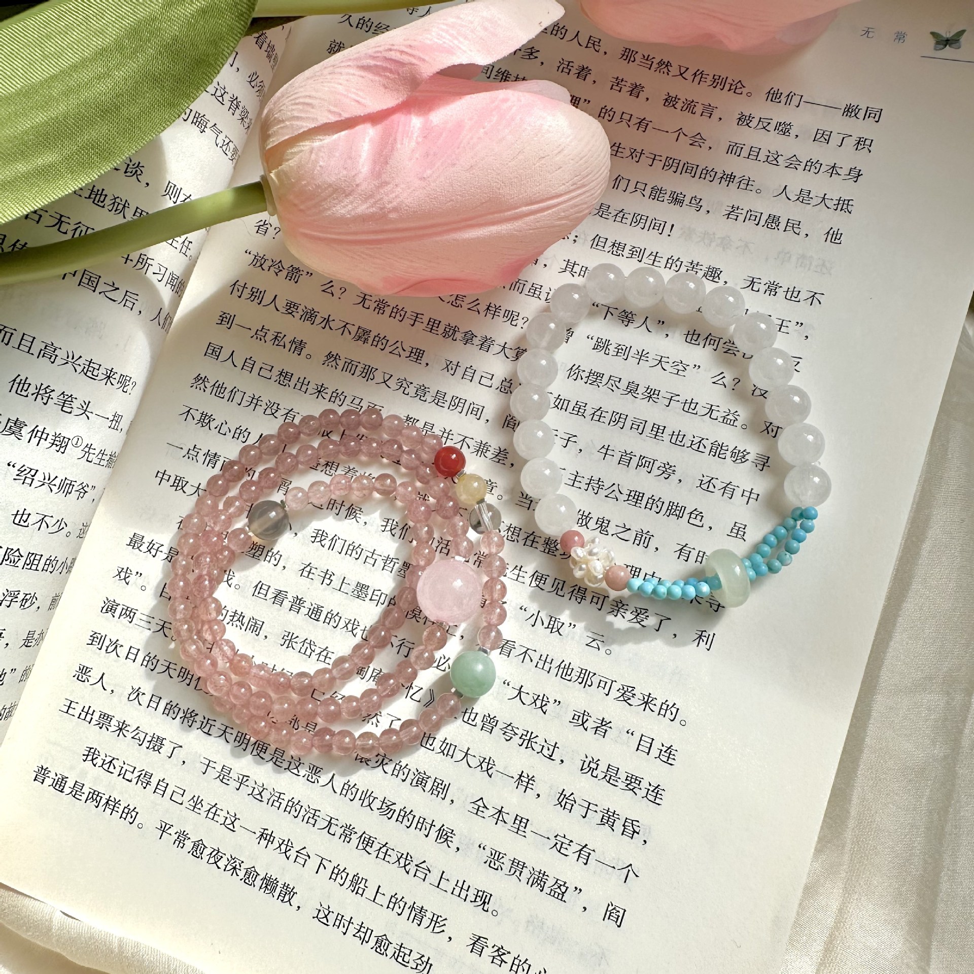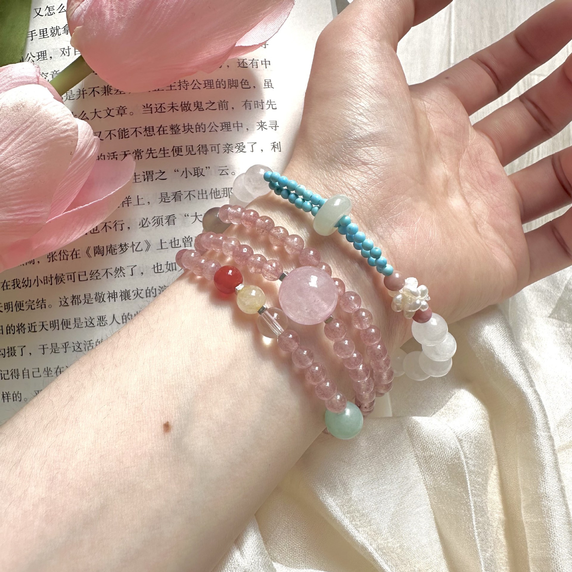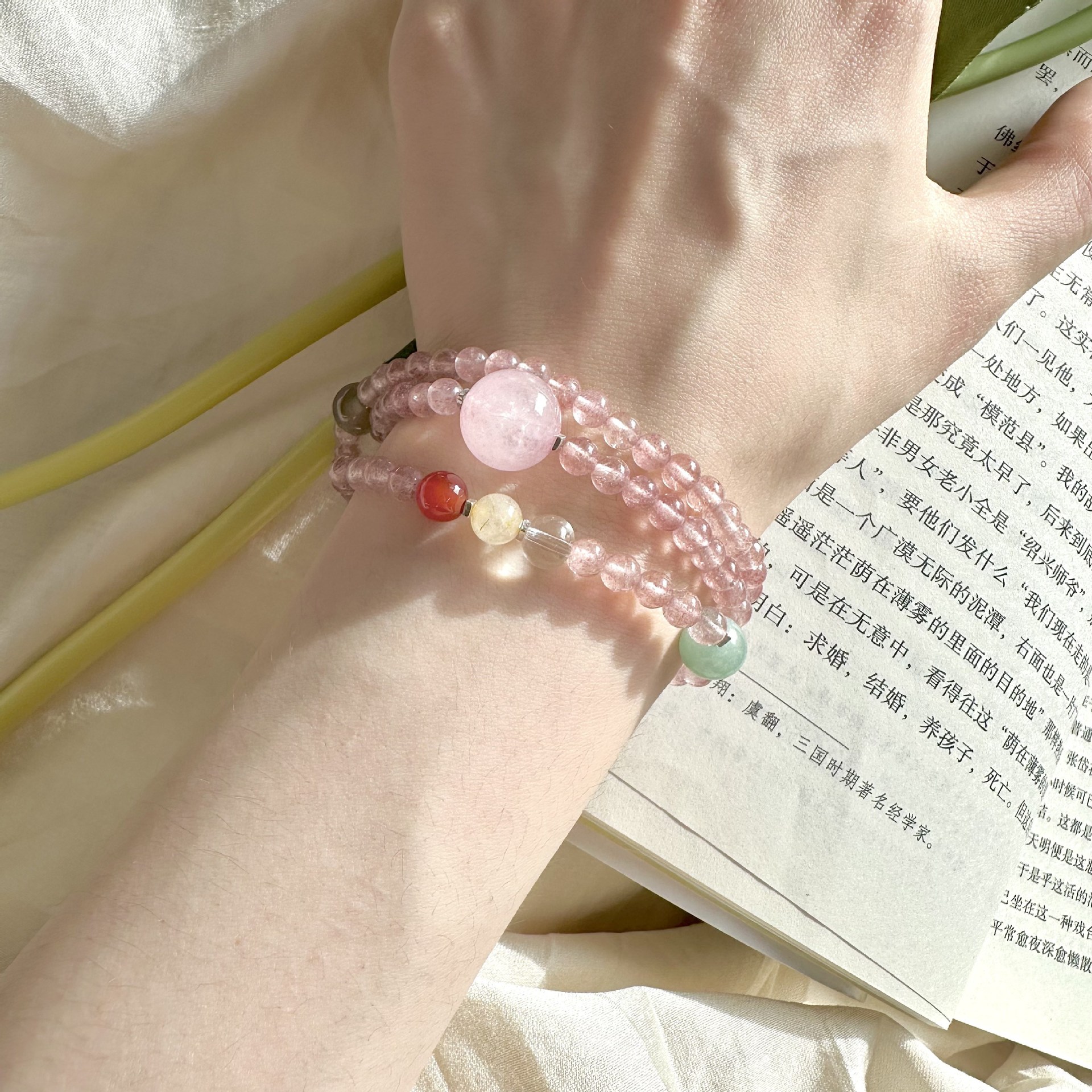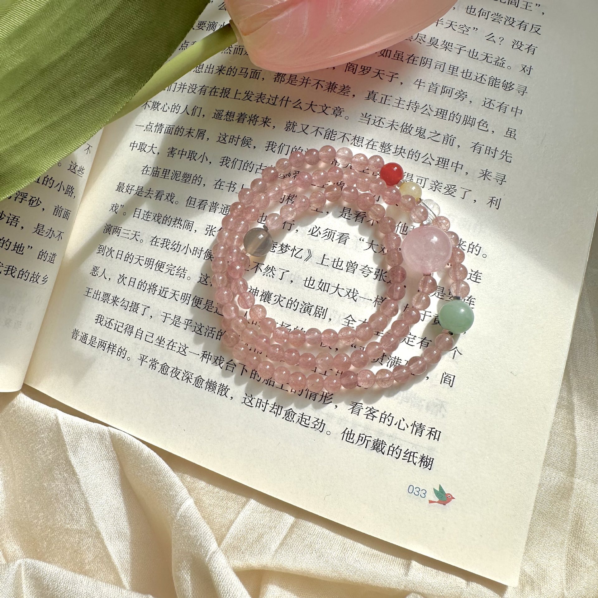 Multi-loop Strawberry Quartz: As sweet as mulled wine berries — attracts warmth, joy, and heartfelt connections